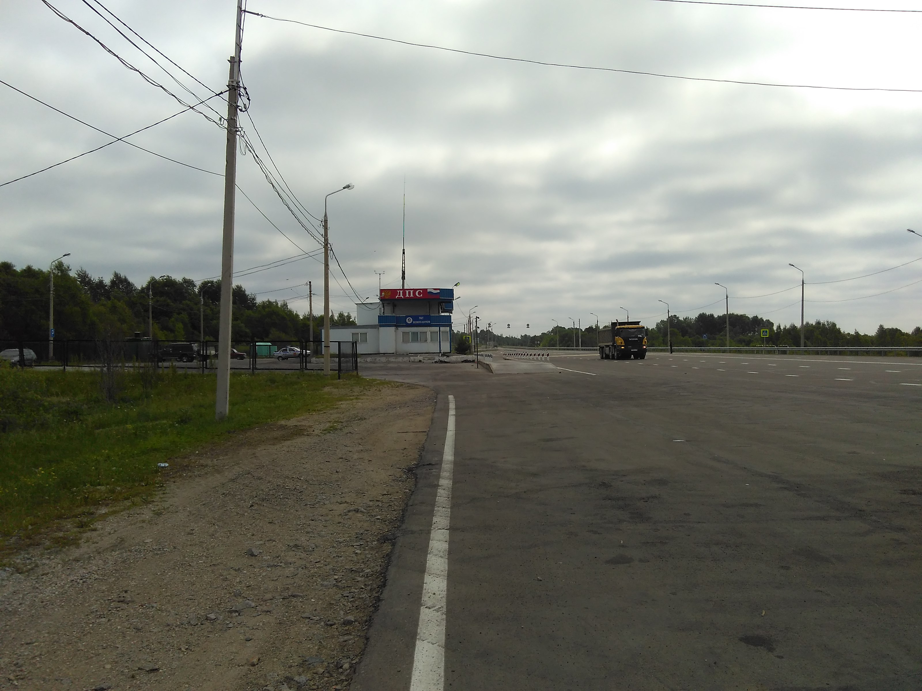Хотя вчера, прежде чем ложиться спать Нелльке и мерещились кругом свирепые кабаны, отрубилась она очень быстро. Проснулся я часа в три или четыре, следом, словно почувствовав что-то, проснулась и жена. Удивились тому, что в такое время уже светло и опять заснули. В следующий раз я проснулся часов в шесть, пока почитал новости, часов в семь проснулась и Неллька. Мы потихоньку выползли из душной до сих пор палатки и стали вяло собираться. Спустились к стеле и подняли большой палец вверх. Через час мы вспомнили, что внизу находится пост ГИБДД и решили попросить помощи у них. Заодно и пополнить запас воды, которой осталось на дне одной бутылки. Пост прятался за склоном всего в каких-то двухстах метрах. Мы спустились и подошли к стоящему владельцу полосатой палочки. Он зачем-то спросил наши документы и попросил нас пройти за ним на пост. Мы в это время радостно щебетали о недавней свадьбе, о том, что нам бы воды набрать и вообще мы путешествуем автостопом. Владелец волшебной палочки что-то долго проверял по компьютеру, затем стал писать. Уже тогда у меня закралось подозрение, что он выписывает штраф, но поскольку я даже и на йоту не мог представить за что, решил, что он заполняет какие-то специальные бланки. Ну не может же человек быть настолько циничным ублюдком, чтобы штрафовать слегка уставшую пару с огромными рюкзаками за плечами, которые говорят о свадебном путешествии автостопом.