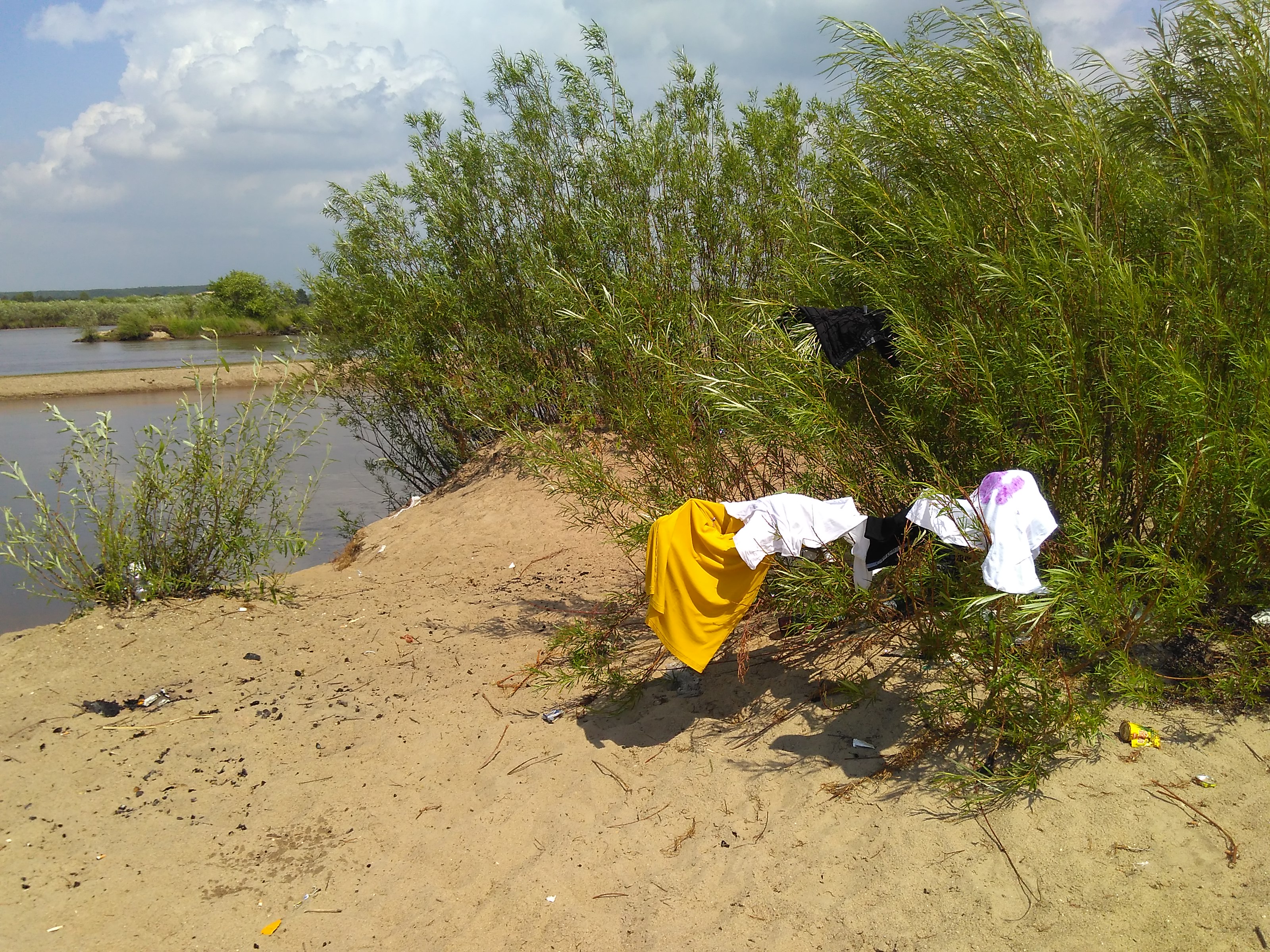 Еще заезжая в город , мы узнали у Виктора, что есть речка и где она находится. Возник план помыться и постираться. С вокзала мы пошли прямиком туда. Почти сразу за нами увязался мальчишка лет десяти-двенадцати, идя позади нас, потом обгоняя и опять затормаживая. Надо сказать, вид здоровенных рюкзаков со скрученной пенкой наверху, привлекает внимание прохожих. Сашка следовал за нами хвостиком.