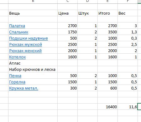 Прикидываю, что необходимо для путешествия по-минимуму, даже сделал текстовый файл. А пока набирал первое предложение — пришло в голову забацать таблицу с ценами и весом. Чем сейчас и займусь.