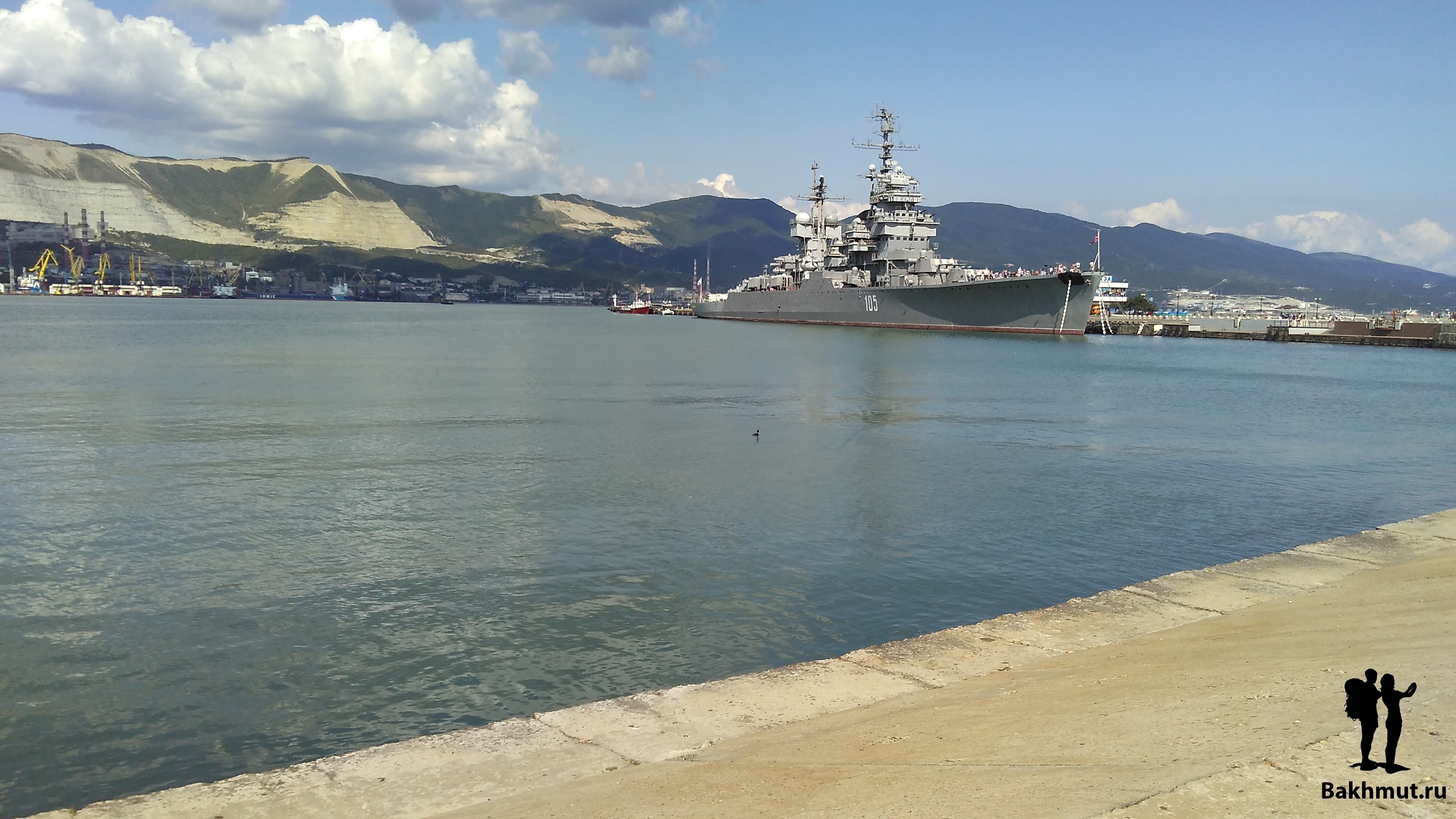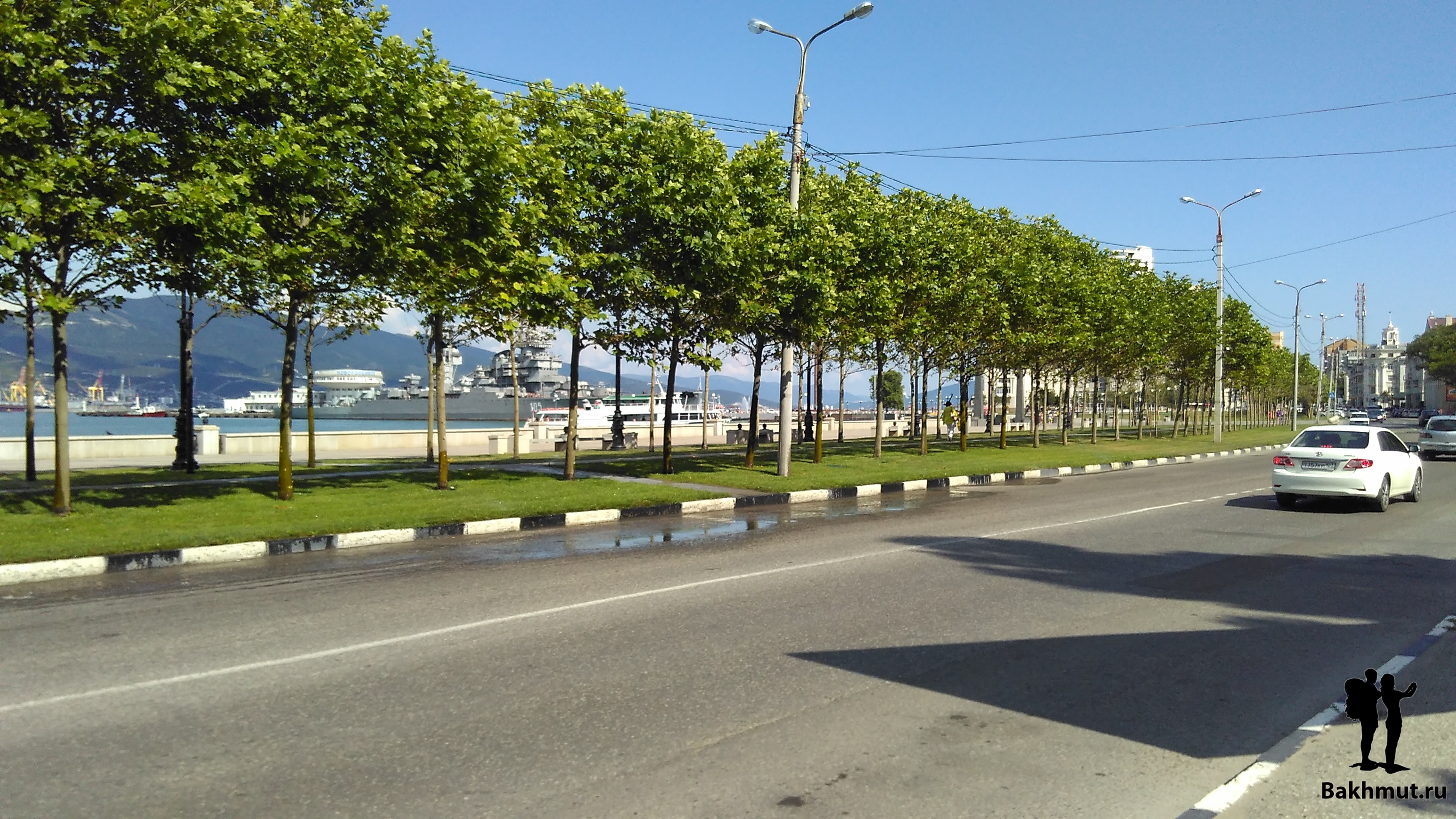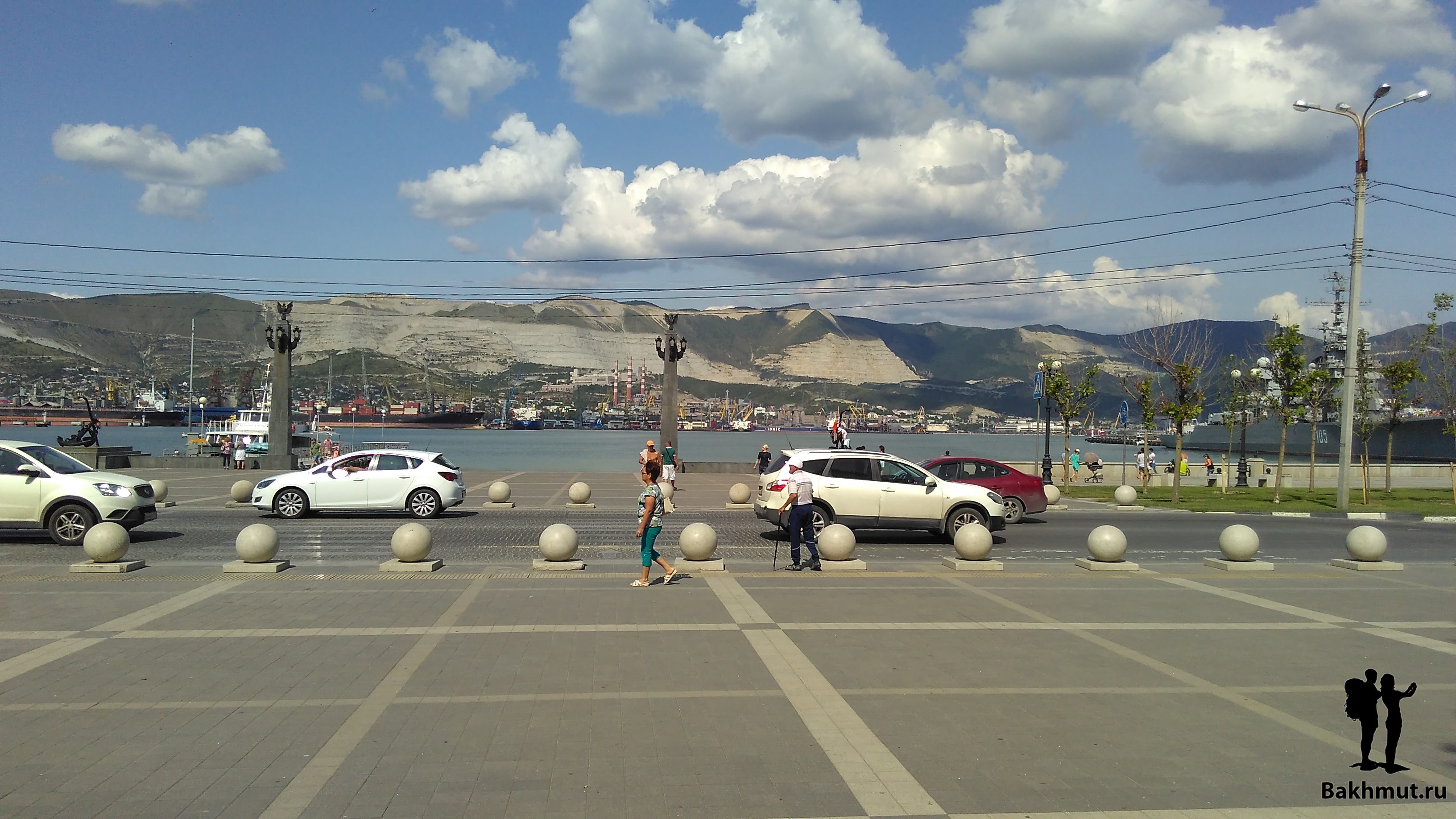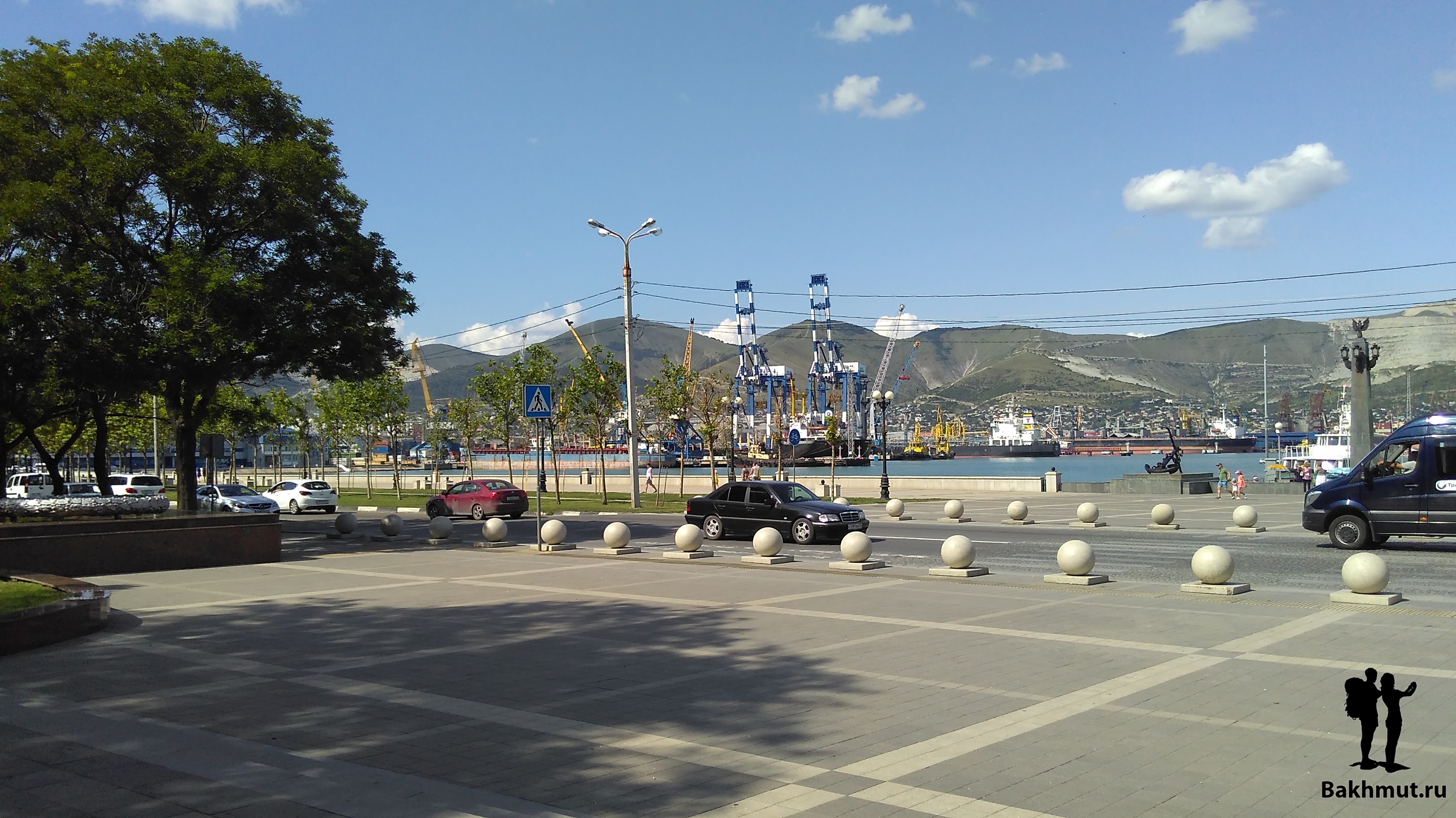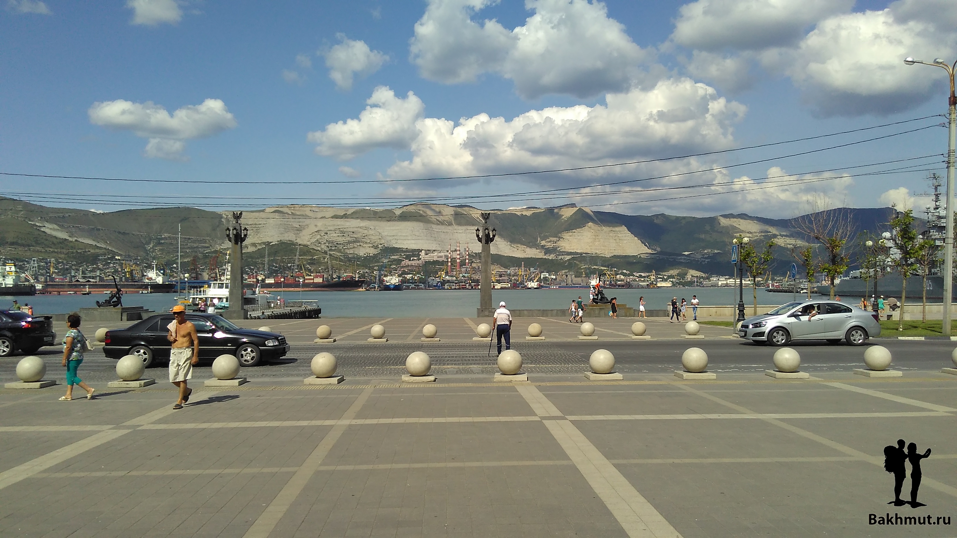 Противоположный берег круто взбирается вверх, вырастая в горную гряду защищающую город. Там, наверное, добывается камень и поэтому леса нет, срублен подчистую. Будто в этом месте оголилась часть исполинской кости города по твёрдости соперничающей с теми, кто семьдесят три года назад защищал город, чтобы ещё через год отбить у фашистов в ожесточённых боях. Потрясающий и запоминающийся вид. Новороссийск очень красивый город. И сразу чувствуется, что приморский. Мне кажется, что приморские города несут неуловимый, схожий отпечаток, живущий в архитектуре, в памятниках. Пускай, в историческом центре Новороссийска широкие улицы и чуть крупней дома, в сравнении со сжатой холмами компактностью Миллионки и аппендиксом набережной Владивостока, но эти города похожи. Кто жил в городе у моря, тот безошибочно чувствует дух приморских улиц.